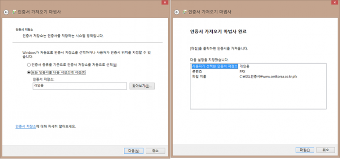 IIS7.0 이상 : https://certkorea.co.kr/bbs/board.php?bo_table=15&wr_id=14